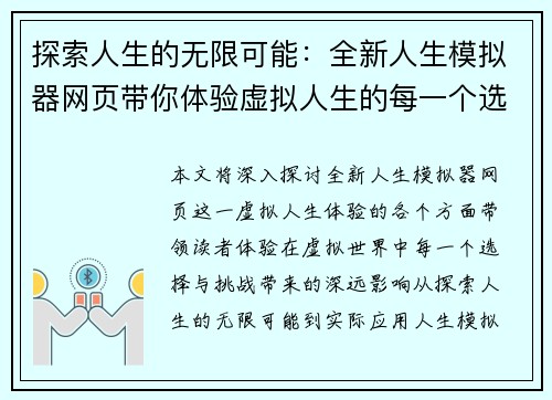 文章摘要:安瑟纳尔魔网节点入口作为一个复杂的网络技术系统,其在探索与应用中的潜力正在受到越来越多关注。本文将从四个关键方面详细分析安瑟纳尔魔网节点入口的技术构架、功能特点、应用前景及其在实际场景中的挑战与发展。首先,文章将介绍魔网节点入口的基本概念及其在网络架构中的作用,解释这一技术的基础理论及其对...